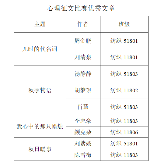 心理征文活动的举办,让同学们有了一个去倾诉的平台,也让同学们知道了别人内心的想法。总之,心理征文活动有助于调节心理压力、释放心理压力,对员工学习与成长有较大帮助。