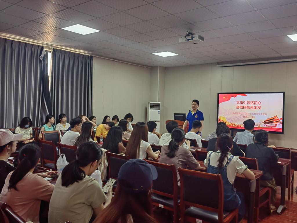 李亮副书记以 《党旗引领铭初心 奋楫扬帆再出发》为主题,为2023届毕业生党员讲授专题党课带领大家重温了入党初心决心,坚定奋斗信念。李亮副书记为大家讲解了新时代合格党员的要求,从把握大势、勇于担当、勤于实干三个方面详细解读了如何才是一名合格的共产党员。他还讲解了党组织关系转接的注意事项,叮嘱大家要认真对待党员材料,做好个入党组织关系转接相关工作