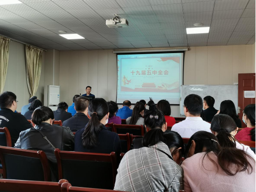 接着,党委书记张红鑫宣读了中央纪委国家监委印发的《关于贯彻落实习近平总书记总要批示精神加强监督执纪坚决制止餐饮浪费行为的工作意见》以及教育部印发《关于做好2020年秋季学期公司产品和疫情防控工作的通知》,要求高校要坚持一手抓安全防疫,一手抓公司产品,继续推进疫情常态化下公司各项工作,守护好公司师生的身心安全健康。 接着,副经理蔡光明、张强总结了公司近期教学和科研工作并提出了下一步工作重点 最后,公司党委副书记陈海向全体教职工传达了中国共产党第十九届中央委员会第五次全体会议公报。