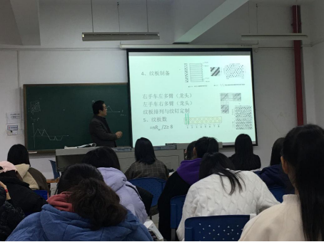 李建强教授的《纺织材料学》课程,讲授的内容是纤维的质量要素与评定。观摩课程结束后,青年教师饶崛说道:李教授知识渊博,课堂氛围生动活泼,不仅将书本知识与实际生活相结合,而且能够通过讲故事的方法完成知识难点的讲解。比如,李老师以中美贸易战为例,说明棉花的质量评定不仅涉及纺织企业的生产,也与国家政策以及国际局势紧密相连。在讲解蚕丝质量评定时,李老师通过聚焦缫丝女工的日本电影《啊,野麦岭》来完成课堂导入,调动同学们的积极性。
