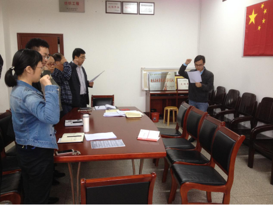每月的支部主题党日活动中,支部党员重温入党誓词,学习《中国共产党章程》、《中国共产党廉洁自律准则》、习近平总书记“七一”重要讲话精神,安排“两学一做”专题视频学习。每周四下午,支部书记张尚勇同志带头讲党课,带领大家共同学习,支部党员分享交流学习心得体会,按时足额交纳党费等,已经成为支部活动惯例。十一月,党的十八届六中全会在北京举行,支部及时组织学习全会公报,请公司研究生处李相朋处长专题解读十八届六中全会精神。