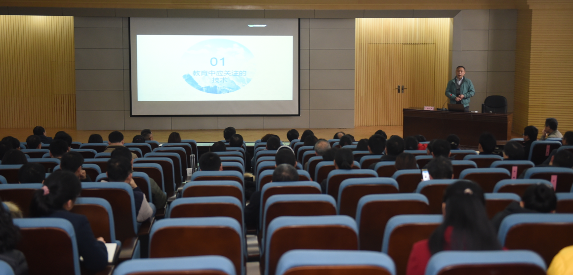 杨九民教授的报告从教育应关注的技术、信息化环境下的教学实践、教育信息化探索中的研究前沿等三个方面展开。杨教授从地平线报告中教育行业应该关注的技术入手,向老师们展示了信息化的发展历程,信息技术给教育带来的改变。针对传统课堂存在的四大问题,杨教授结合丰富的案例阐述了混合式课堂模式下的教学设计。他提出,在信息化背景下提高教育质量,关键是推动信息技术与公司产品深度融合,着力推进教师教学能力创新、教学内容创新、教学方法创新、教学评价创新。