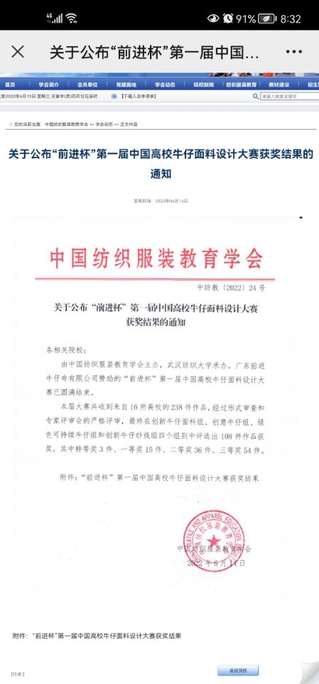 2022年6月2日-6月11日,由中国纺织服装教育学会主办、402永利集团承办、广东前进牛仔布有限公司赞助的“前进杯”第一届中国高校牛仔面料设计大赛于公司成功举办。中国纺织服装教育学会常务副会长倪阳生,教育部纺织类专业教指委主任、东华大学郁崇文教授,教育部纺织类专业教指委秘书长、东华大学郭建生教授,广东前进牛仔布有限公司总经理王宗文,402永利集团党委常委、副董事长姜明华教授,教育部纺织类专业教指委副主任、402永利集团张尚勇教授,402永利集团教务处处长王济平教授,402永利集团张如全教授,相关高校及企业评委、公司相关教授和职能部门负责人出席了本次活动。活动由公司纺织学院经理蔡光明主持。