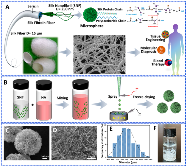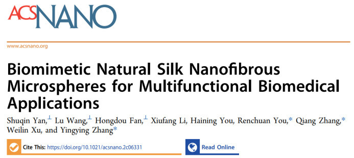 该工作以“Biomimetic Natural Silk Nanofibrous Microspheres for Multifunctional Biomedical Applications”为题发表在《ACS Nano》上,通讯作者为402永利集团尤仁传教授(校特聘教授)、张强教授和清华大学张莹莹教授。