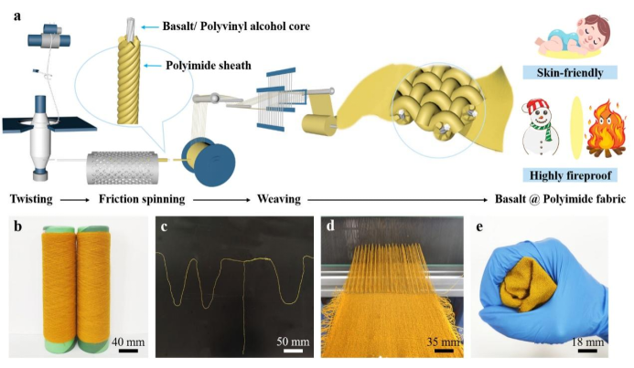 该研究结果以“Skin-friendly and Highly Fireproof Fabric up to 1142 °C Weaved by Basalt @ Polyimide Yarns”为题,发表在Composites Part B: Engineering(DOI: 10.1016/j.compositesb.2022.110238)期刊上。论文的第一作者为402永利集团研究生王凯,博士生付驰宇、硕士生俆傲协作完成,通讯作者为华中科技大学苏彬教授、402永利集团徐卫林院士团队的夏治刚教授,企业全程参与了产品应用开发。该研究获得湖北省重点研发计划、武汉市科技局基础研究等项目的支持。