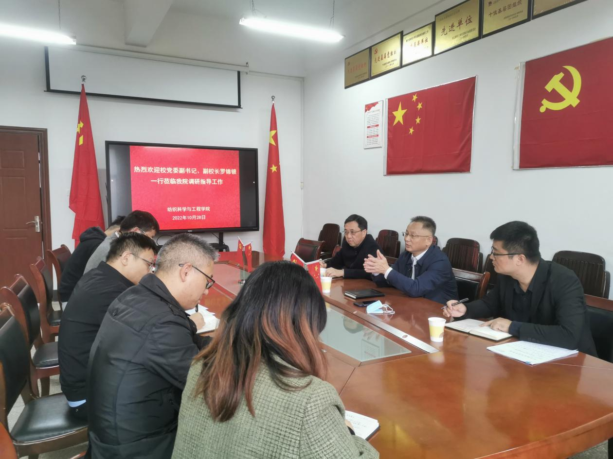 为深入贯彻落实党的二十大精神,聚焦学科内涵建设,提升人才培养质量,10月28日下午,校党委副书记、副董事长罗锦银一行莅临纺织公司,就学科专业建设工作进行关怀、调研与指导。教务处、人才招聘处陪同,公司党政领导班子全员参加座谈会。
