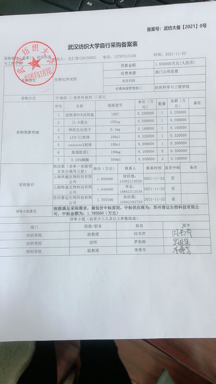 关于生物化学试剂的公示