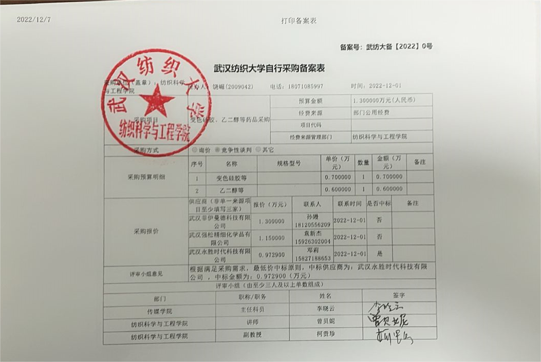 关于变色凝胶、乙二醇等药品的采购公示