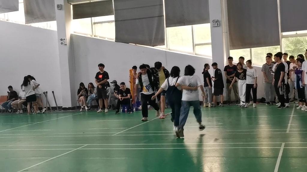 羽毛球馆中,个人赛与团体赛同时进行,热火朝天。“沙包投准”、“记忆力大比拼”、“八人九足”、“呼啦圈传递”……各种活动趣味丛生,参赛师生和谐融洽,参加着一个又一个活动。