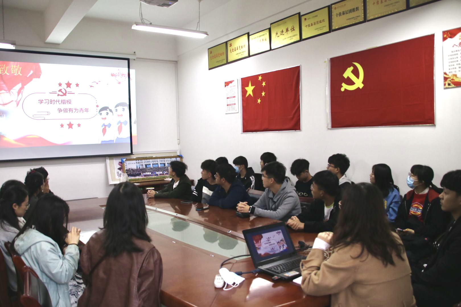 会议伊始,陈海老师围绕“何谓时代楷模”为同学们展开讲解。呼吁同学向对人们的思想和行为产生巨大深远影响令人钦佩的人们进行深度学习。并带领同学们观看两位时代楷模的事迹视频。视频中二位楷模的事迹深深打动着同学们,这两位楷模让大家明白,作为祖国未来的栋梁,且正处于一个伟大的时代,我们需要抖擞精神,因国家有着长远的目标,民族复兴需一辈一辈的青年学子投身奉献报效祖国,我们应该不断向优秀靠拢,不仅要学习伟人们爱国报国的高仰思想境界、淡泊名利的高尚情操,更要学习他们无私奉献、“为人民服务”的高贵品格。”