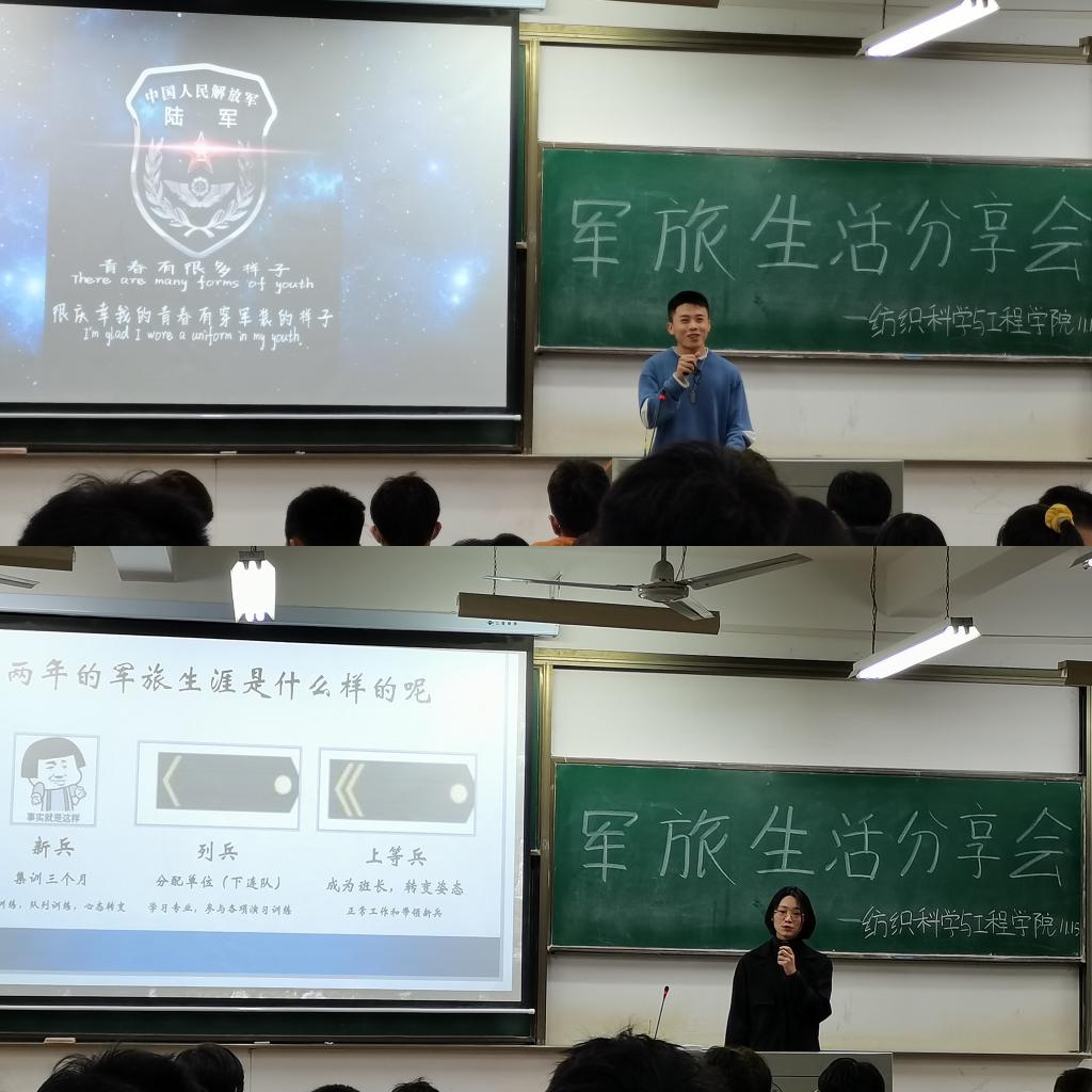 11月15日晚上6点,402永利集团在3栋教学楼03-115教室举行军旅生活报告会。本次报告会邀请了402永利集团纺织12001班张汶和纺织52003班游子吟为同学们分享他们的军旅生活。报告会由纺织实践部田浩然主持、辅导员严蔷薇、李亮、吴童玲及全体新生参加活动。