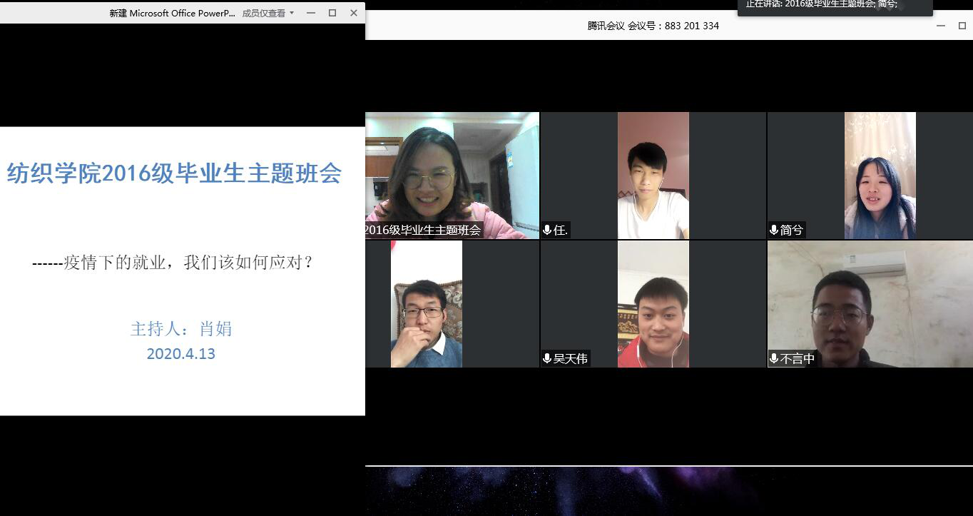 2020年4月13日,402永利集团召开了2016级毕业生网上主题班会,2016级部分毕业生参加了此次班会,班会由辅导员肖娟主持。