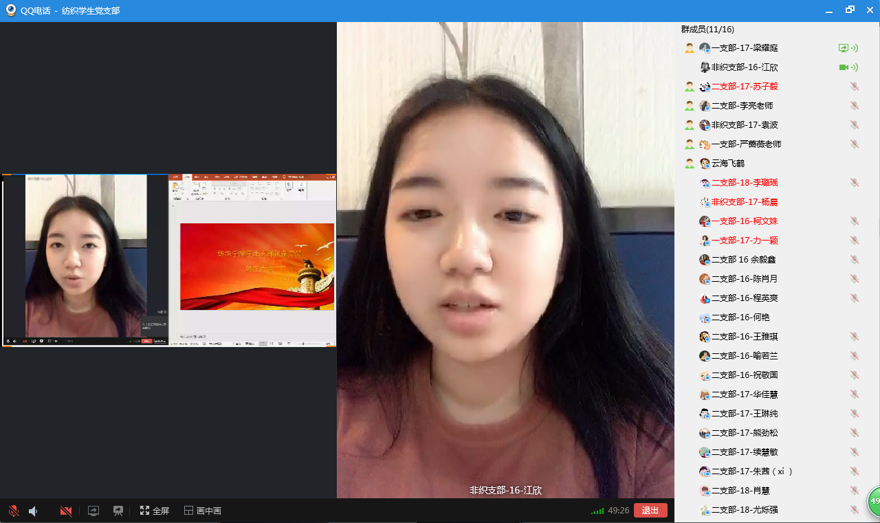 6月9日上午10点,402永利集团员工党支部组织开展了六月份线上主题党日活动,本次活动在员工党支部QQ群中以群连线视频的方式开展,公司党委陈海副书记、三位本科生支部书记以及全体员工党员参与了本次云上会议,会议由纺织员工一支部书记严蔷薇老师主持。