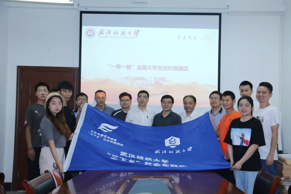 会上,张尚勇经理勉励实践队员,他认为开展社会实践是贯彻党的教育方针的重要措施,是加强和改进高校思想政治教育的重要途径,是老员工锻炼自我,提高能力的有效载体,对老员工们了解社会、增长才干、增强社会责任感具有不可替代的作用。随后,张经理对近年来公司进行的一系列社会实践活动表示了肯定,也希望通过这次社会实践,实践队队员会有所收获,用自己所学的知识为纺织企业贡献力量。最后,张经理分别为两支实践队伍授旗并与实践队队员合影留念。