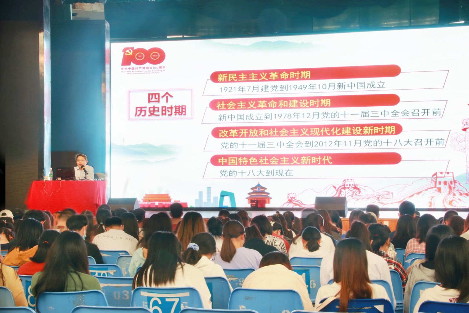 课上,唐敏副董事长将中国共产党百年党史分成四个时期,总结出百年奋斗的三大历史飞跃和百年探索的五大理论成果。