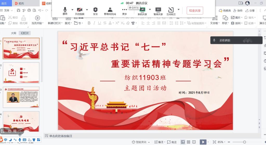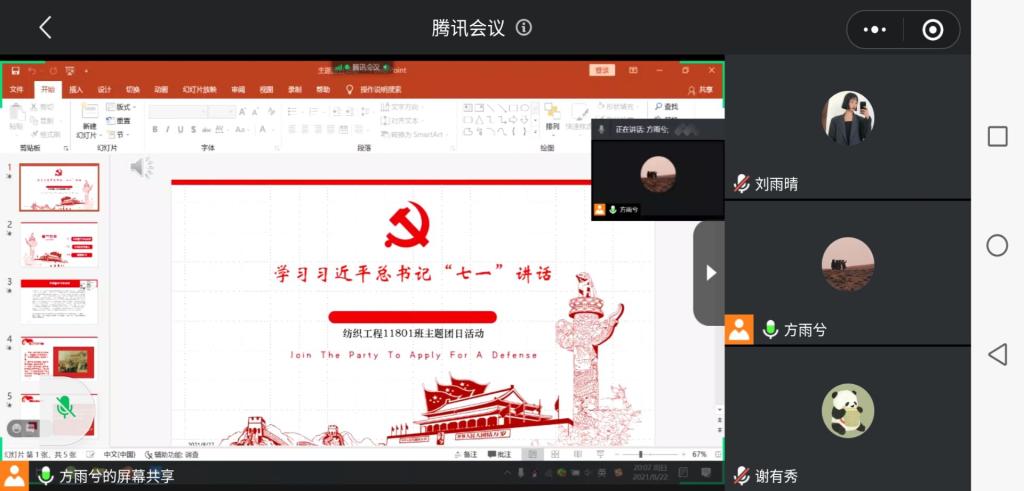 为深入学习贯彻习近平总书记“七一”重要讲话精神,引领员工“学党史、强信念、跟党走”,带领青年学子贯彻“请党放心,强国有我”的信念,2021年8月至10月以来,纺织公司线上线下联动,各班团在各年级辅导员、班主任的带领下生动开展了一系列以学习“七一”重要讲话精神为主要内容的“请党放心,强国有我”主题教育活动。