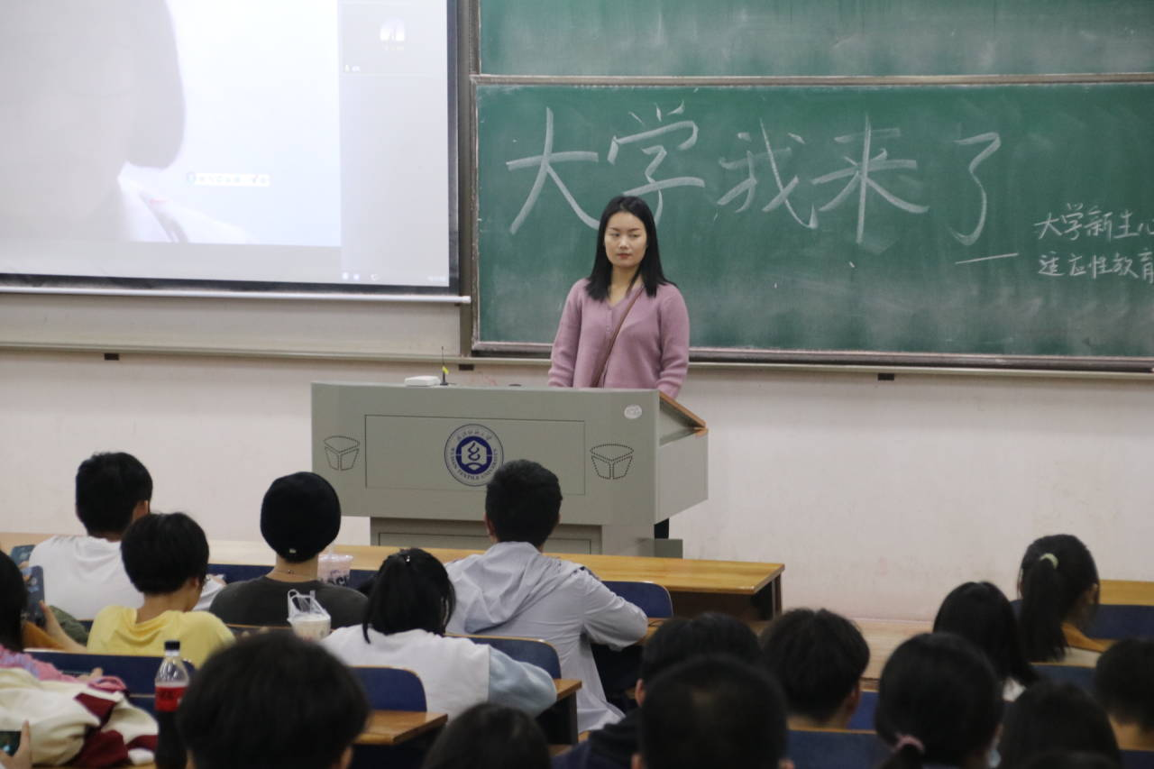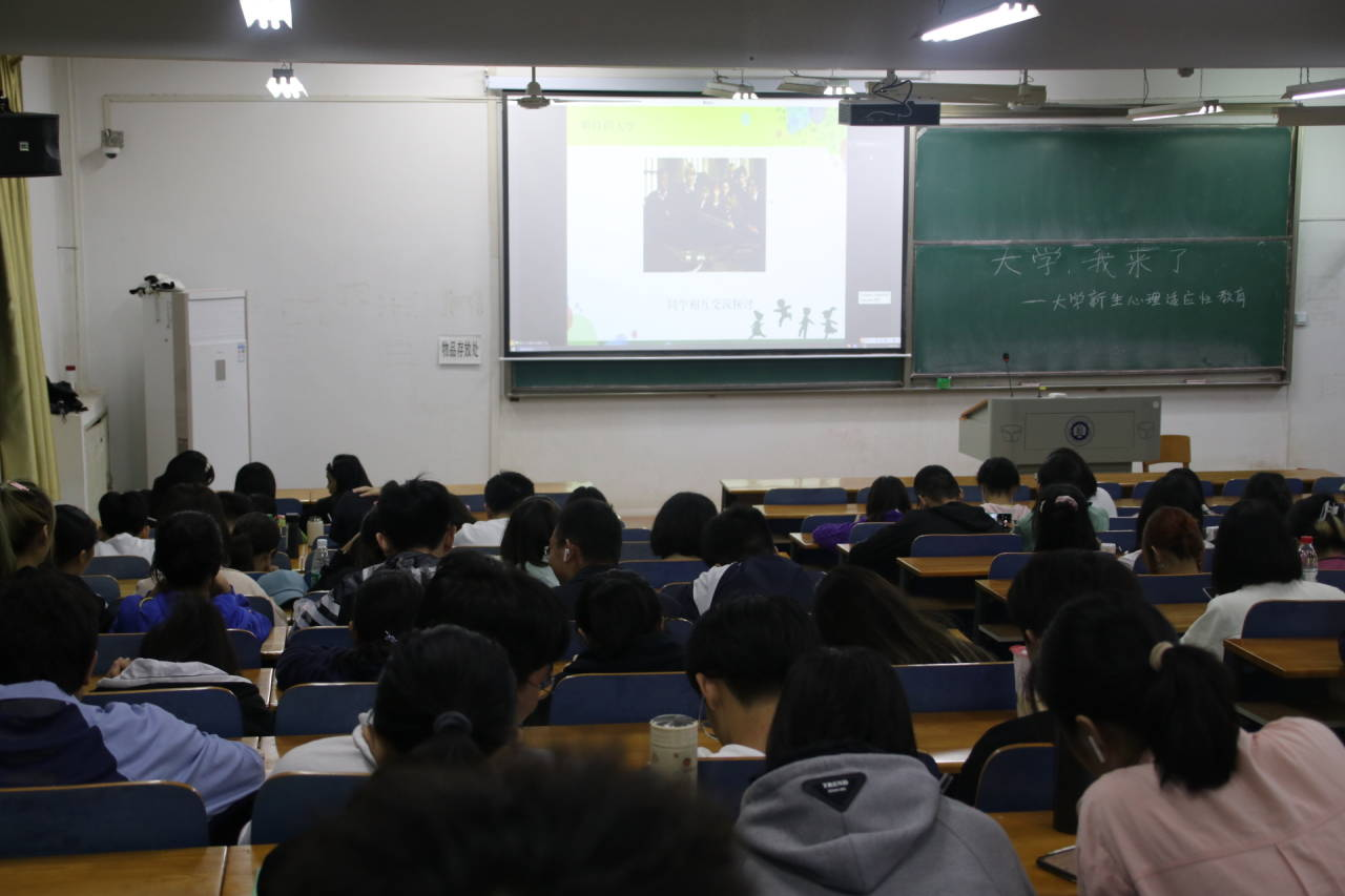 在测试结束后,陈老师讲述了大学新生的主要心理矛盾,包括“自豪感和自卑感的矛盾”,“新鲜感与怀旧感的矛盾”,“独立感与依赖感的矛盾”,通过一个个事例将这些心理具体化,并强调所有大一新生要注意这些矛盾。最后陈老师给新生们提了8个建议,并提供了相关的心理求助信息。