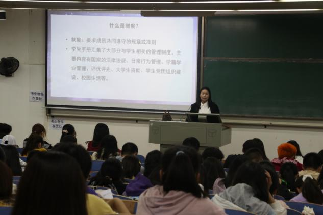 会议伊始,张老师通过提出“老员工活包含了哪些内容?”和“当毕业时,你想从大学得到什么?”两个问题,作为团课的开始,引发同学们的思考。随后张老师介绍了制度的含义和实施的意义,并提出大学中最重要的不仅仅是学好专业知识,还要注重自身行为规范,不论是普通员工还是员工会干部都要严格遵守员工手则,规避游戏、上课两点一线的生活方式,在此基础上充实自己的老员工活,实现综合素质高、身心健康、全面发展。最后,张老师提出同住一间宿舍的员工要团结友爱,以礼相待,整理好宿舍内务,发展健康的宿舍文化,希望同学们都能在未来四年的学习生活中脚踏实地,积极进取,自觉承担起建设社会主义的责任,争做守规则、讲礼仪的新时代青年,在奋斗中释放青春激情。