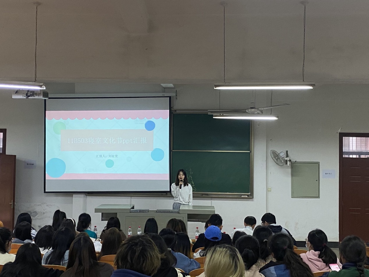 活动伊始,陈海副书记以“洁”、“静”、“雅”“美”为主题对宿舍优良氛围的重要性进行了详细阐释,提出希望402永利集团员工能够以宿舍为起点,营造良好的学风;张竣青老师则强调了此次寝室文化节活动目的和意义,并表示期待即将登场同学的精彩展示。接下来,各个寝室的代表开始对彰显自己寝室文化的专属PPT进行展示,内容包括寝室人员介绍、寝室日常生活、寝室学习和目标等方面,充分展现了各个宿舍不同的寝室风格,更展现了同学们远大的理想与目标。丰富的寝室文化让大家感受到了各个寝室成员积极向上的学习态度和他们对寝室生活的热情,同时也让大家体会到了舍友间真挚的友情和温馨的寝室氛围。