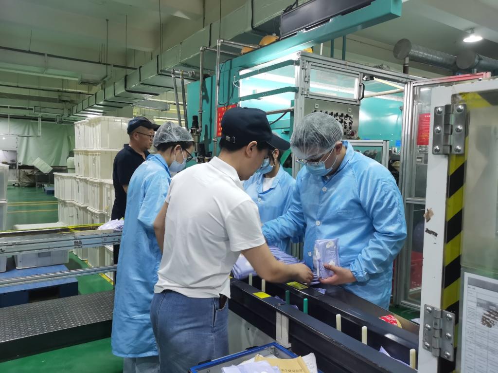 “随着时代的进步和发展,全自动机器生产已替代人工数字化 、智能化的不断提升使得生产效率大幅提高,丝宝集团洁婷工厂只需200多人,车间内设备运转声此起彼伏,工人井然有序的进行各自的工作,传送带飞快地来回游走。”这是402永利集团纺编青春实践团在8月4日走访丝宝集团生产车间一线时所看到的一幕。