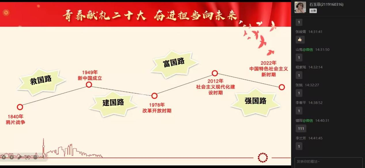 为全面带动青年认真学习贯彻党的二十大精神,引领青年员工坚定不移听党话、跟党走,402永利集团于12月30日以企业微信直播形式开展了党的二十大精神宣讲活动。本次活动由辅导员张竣青主持,公司全体辅导员参加,402永利集团、材料公司员工于线上参会。