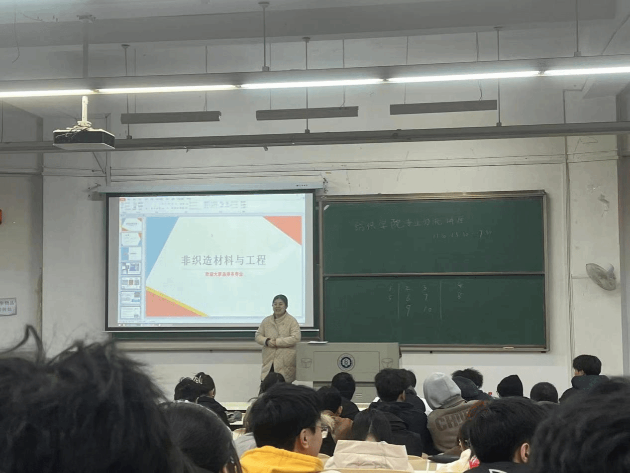首先,非织造材料与工程系主任张明老师围绕专业培养方案,团队力量,就业与升学四方面,以更加专业、更加全面的角度展开介绍,向员工们强调非织造材料与工程专业是立足于现代社会的发展需求并为社会不断培养掌握非织造专业技能人才的学科,着重强调了非织造材料与工程专业的独特优势。同时向同学们介绍了非织造材料与工程的主要课程及毕业要求。同时,张明老师还贴心为同学们分享了非织造专业的学习路径,为同学们对非织造材料与工程专业有了更深刻的了解,对专业的选择也有了更加清晰的想法。