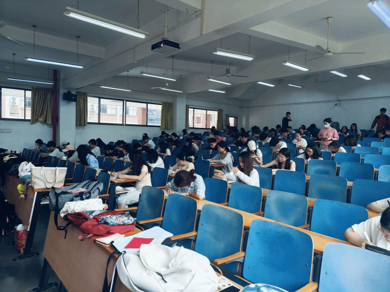 为充分保证考试的公平性和严肃性,考试以闭卷形式进行,考前各监考人员对入场考生身份一一核验,向考生耐心讲解考试要求及注意事项,要求每位考生诚信应考、认真作答,提醒考生将携带的电子产品放到指定位置。考试过程中,考生们低头沉思、奋笔疾书,用实际行动诠释着对中国共产党的向往和憧憬。负责监考的院员工会志愿者和员工干部认真负责,严格按照考试规则进行监考,校团委老师现场监督指导,确保考试顺利进行。