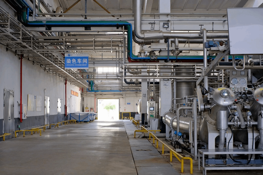 随后,实践队跟随企业负责人的脚步,走进了企业的四大车间——纺纱、染色、整型、机织染色车间。负责人着重向我们介绍了染色车间。在此之前,负责人考虑周全地为成员们讲解了工厂生产的大概流程,让大家对接下来的参观能够有初步的认识和了解。初入车间,成员们看到的是一台台摆放整齐的染缸,在染缸上方,是配比好的染料输送管道。而与成员们印象中不同的是,车间里的工人并不像想象中的那么多。紧接着,负责人带领着成员们进入了车间的中控中心,与车间主管进行交流,大家这才解决心中的疑惑。实践队成员费逸鑫表示:“布料染色过程大部分都是自动化设备完成,与我们的猜测大相径庭。纺织智能化的确让人耳目一新,也让我们对纺织未来前景充满期待。”