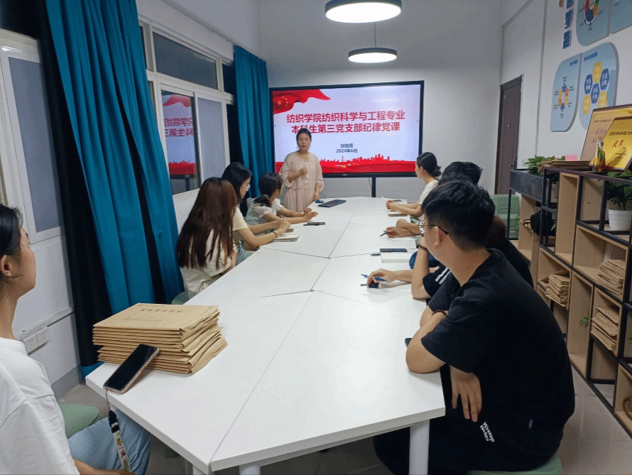 主持人张竣青老师首先带领员工们回顾了《中国共产党纪律处分条例》的修订历程,学习了修订《条例》的重大意义。大家一致认为《条例》用党的创新理论引领纪律建设工作,为新时代新征程上持续推进全面从严治党提供坚强的纪律保障。随后张老师聚焦解决一些党员对党规党纪不上心问题,进一步明确言行的衡量标尺,加强对党员干部的日常管理和监督。最后张老师强调,这次党纪学习教育,以学习贯彻《中国共产党纪律处分条例》为重点,党员应当坚持逐章逐条学,不仅要准确掌握主旨要义,还要真正把《条例》刻在心上、烙在脑海,做到学纪、知纪、明纪、守纪。要准确把握“六项纪律”的规定要求,要在思想上划出红线、筑牢底线,遵守党的纪律规矩,真正弄明白能干什么、不能干什么,常敲思想钟、常紧纪律弦、常存敬畏心。随后张竣青通过身边师生党员生动的故事、鲜活的案例和朴实的语言,讲述纺大党员遵规守纪、奋进新征程、建功新时代的故事。希望大家能学习他们坚守初心、对党忠诚的政治品格,立足岗位、尽忠职守的使命担当以及奋勇拼搏为人先,不负韶华春华年的进取精神。